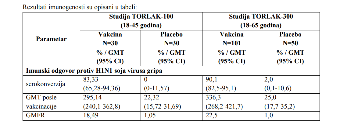 - Imunogenost vakcine je proučavana u okviru populacije koja je bila uključena u dve opisane studije.